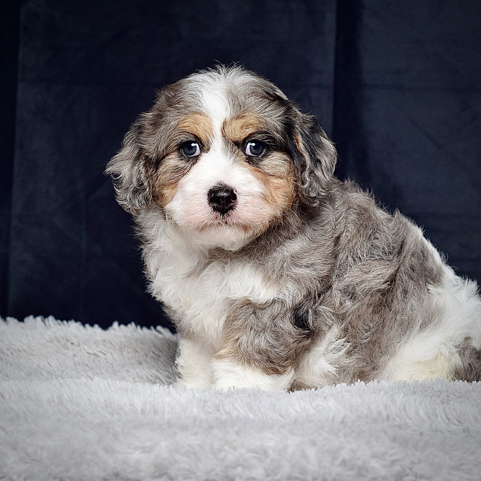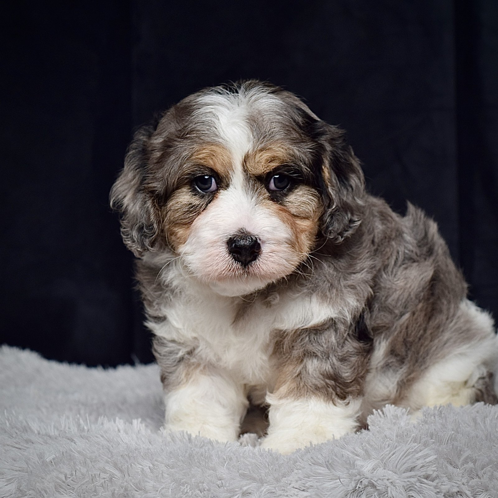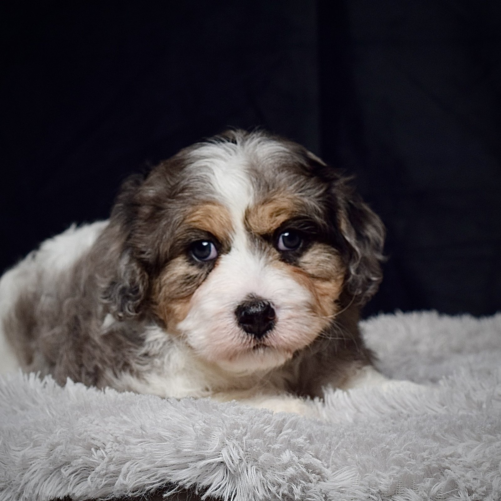 Meet this adorable petite mini Cavapoo, a tiny bundle of joy with a delightful personality and a coat as soft as a cloud. He blends the intelligence and hypoallergenic traits of a Poodle with the friendly nature and loyalty of a Cavalier , all in a compact package. His playful spirit and heartwarming charm make him the perfect companion for any household, promising endless love and happiness to those lucky enough to bring him home.