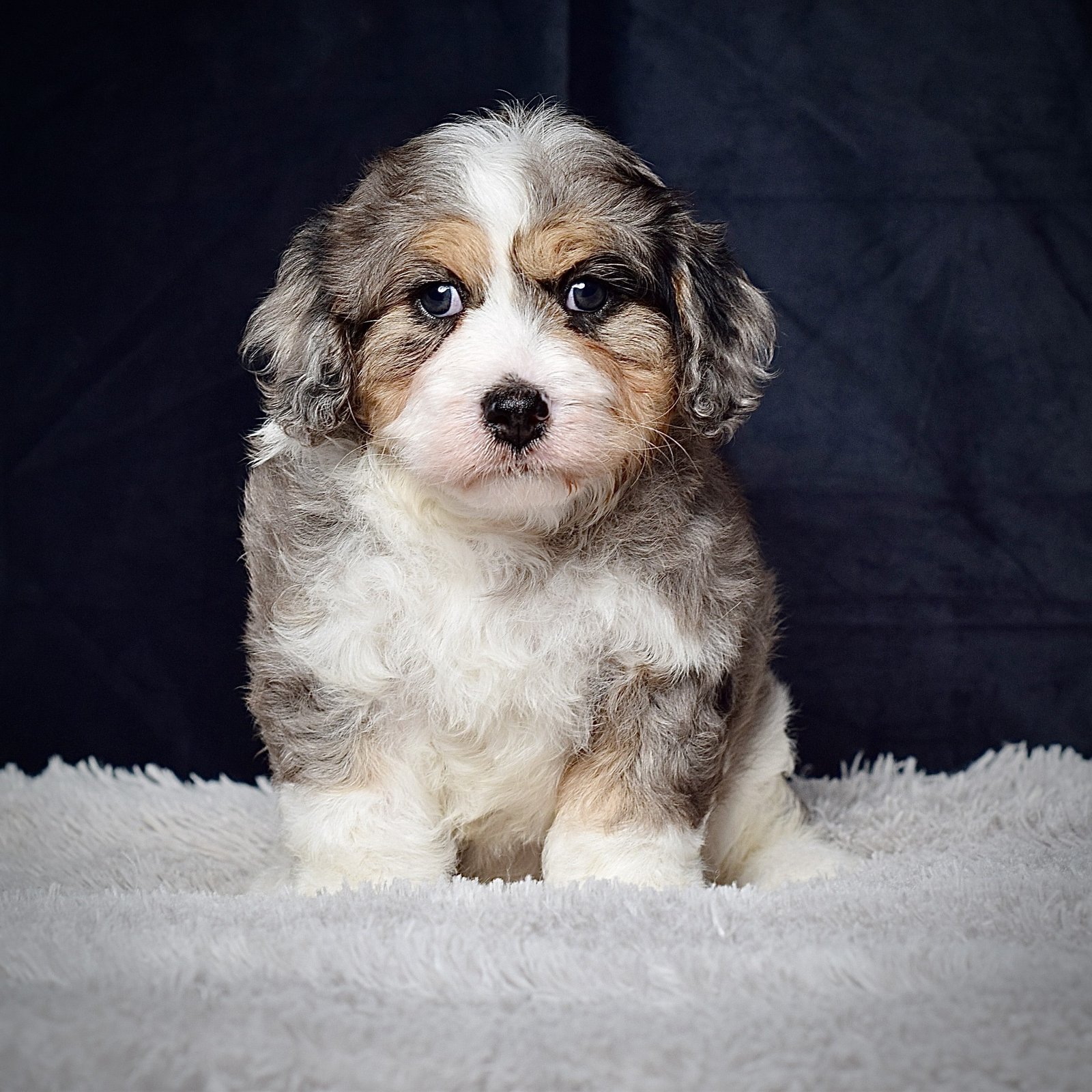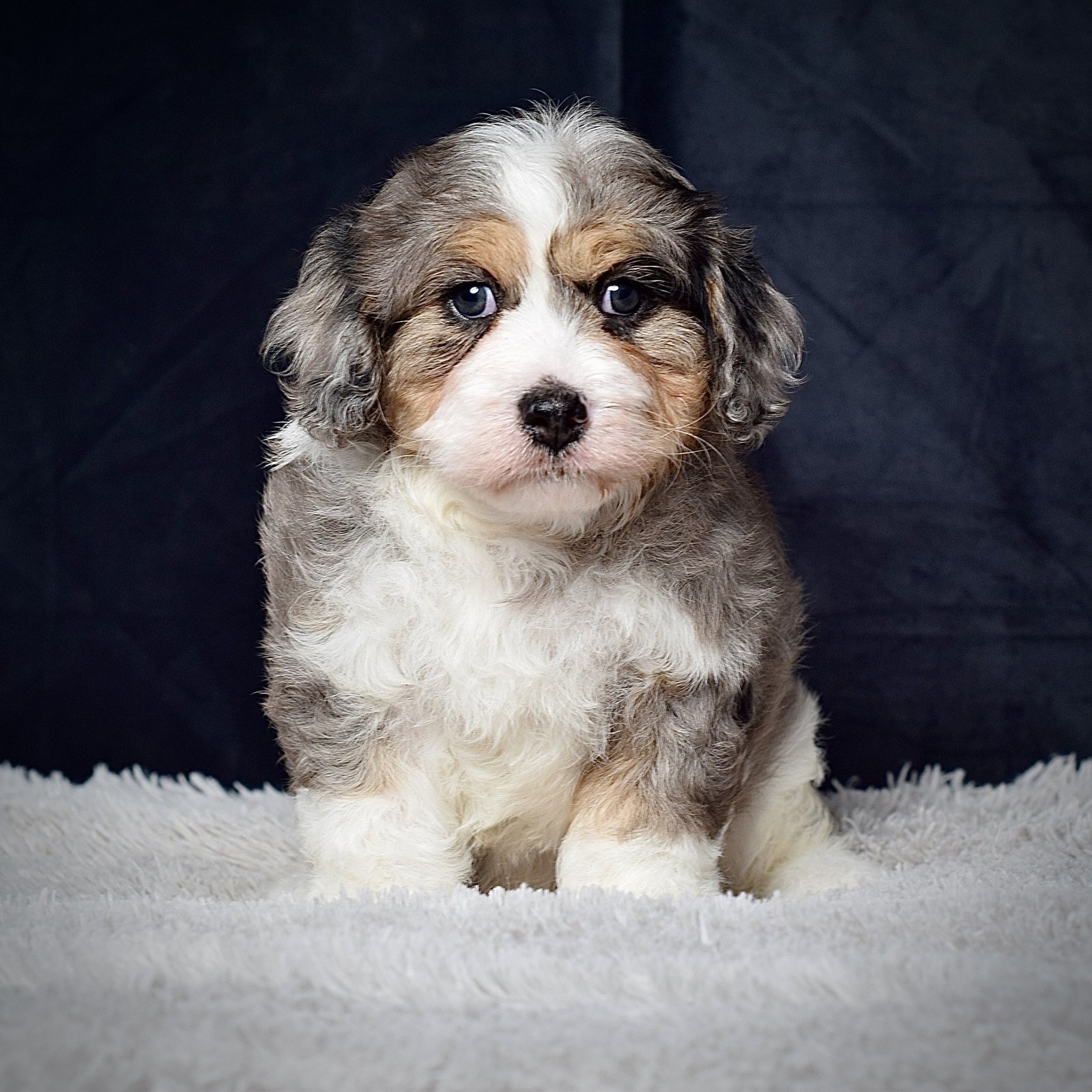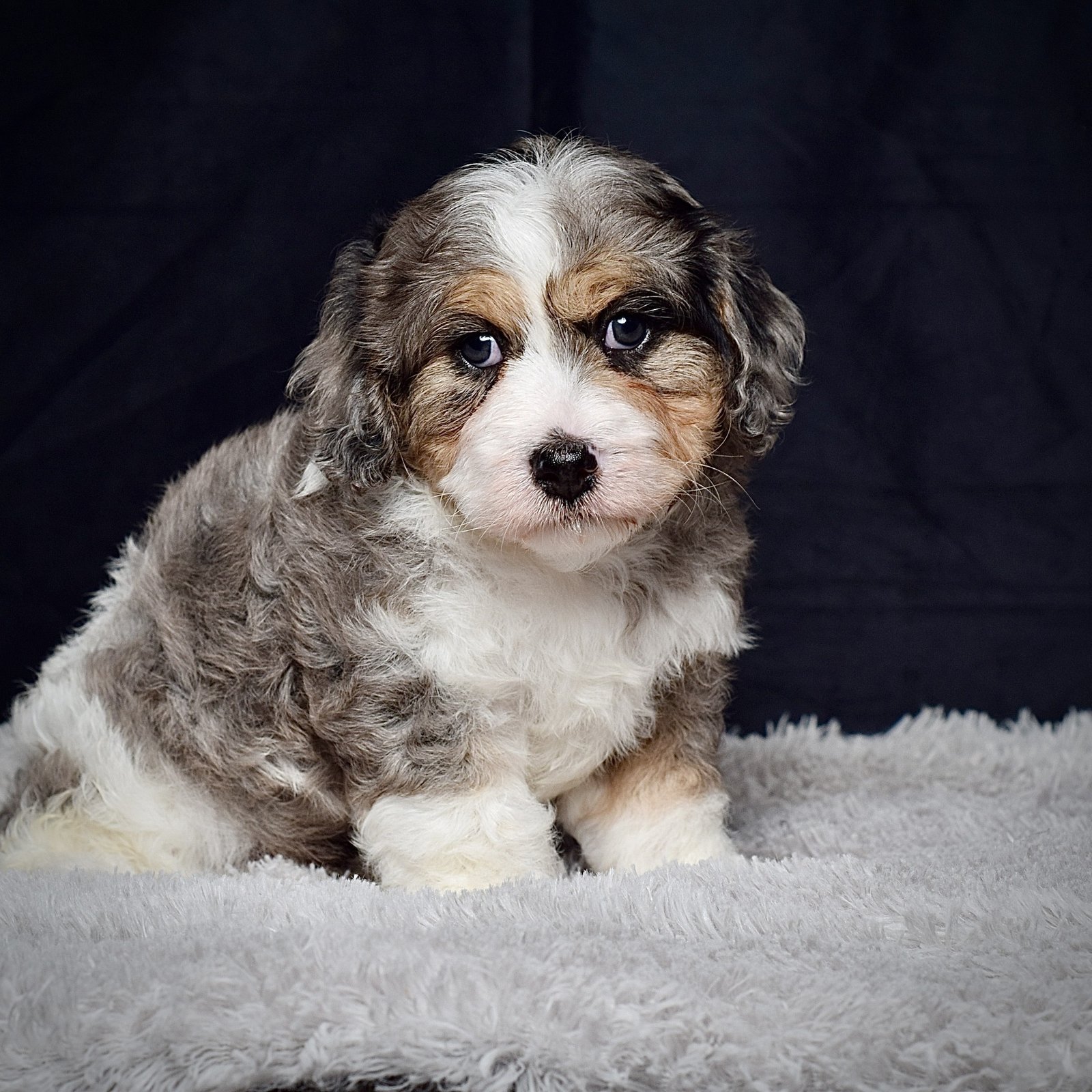 Meet this adorable petite mini Cavapoo, a tiny bundle of joy with a delightful personality and a coat as soft as a cloud. He blends the intelligence and hypoallergenic traits of a Poodle with the friendly nature and loyalty of a Cavalier , all in a compact package. His playful spirit and heartwarming charm make him the perfect companion for any household, promising endless love and happiness to those lucky enough to bring him home.