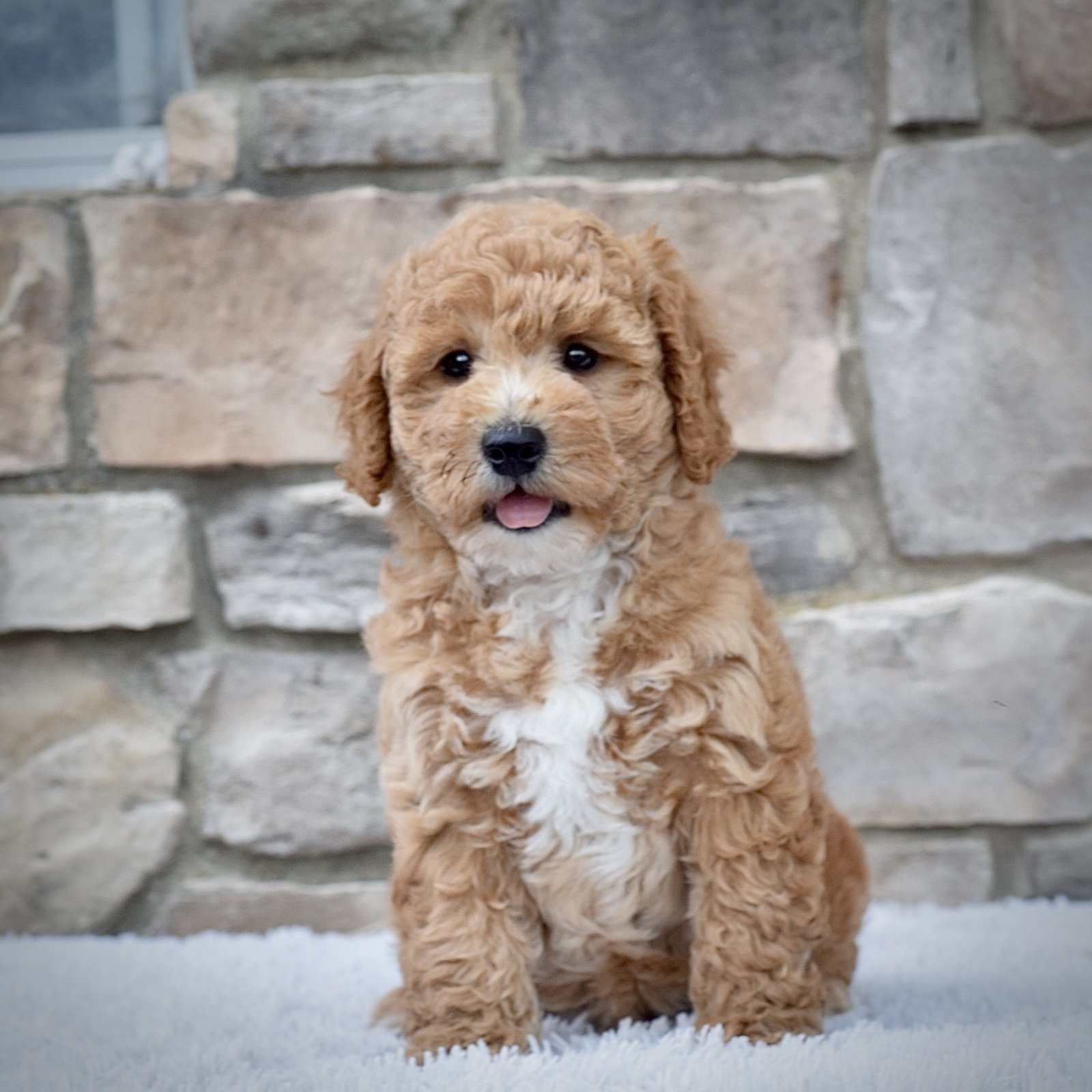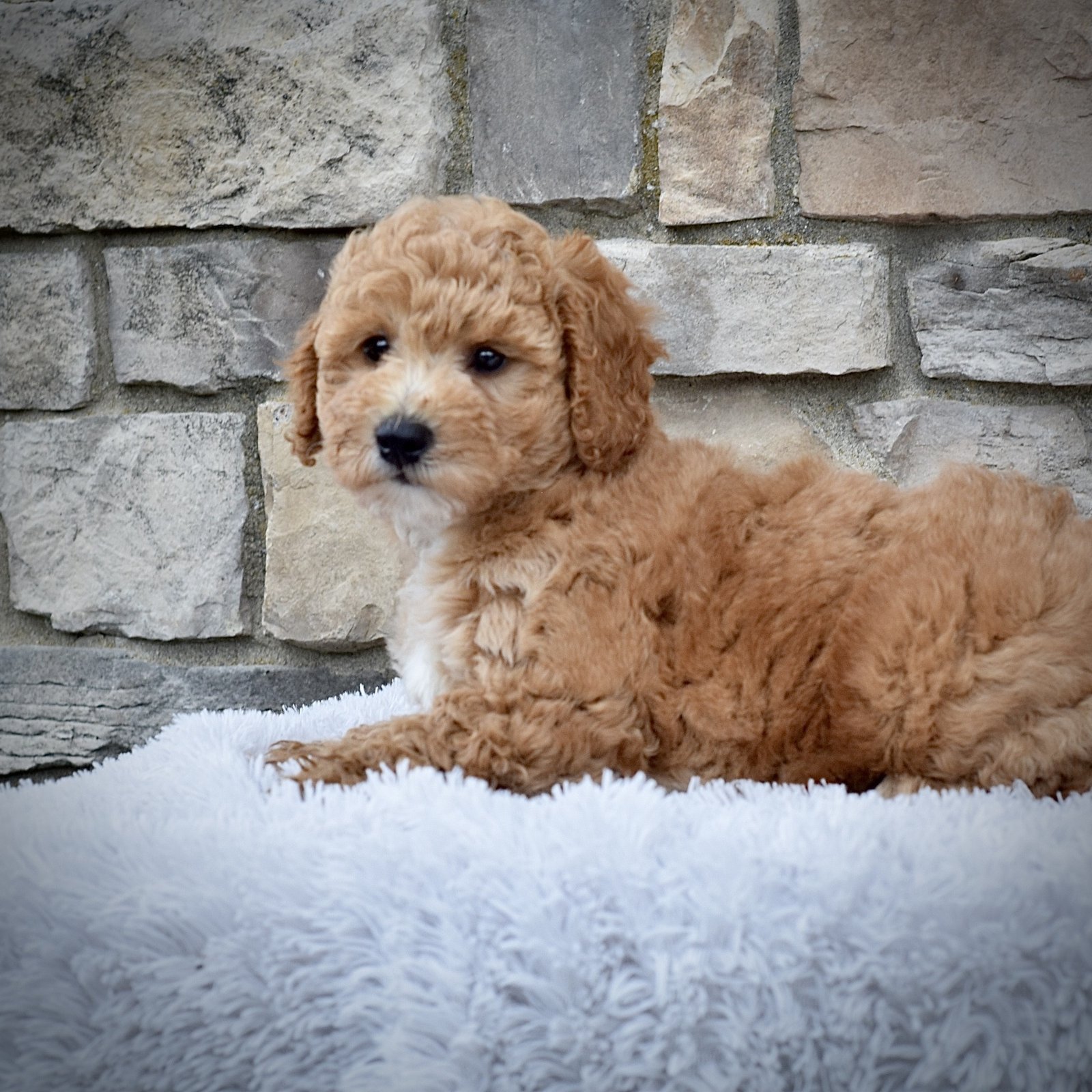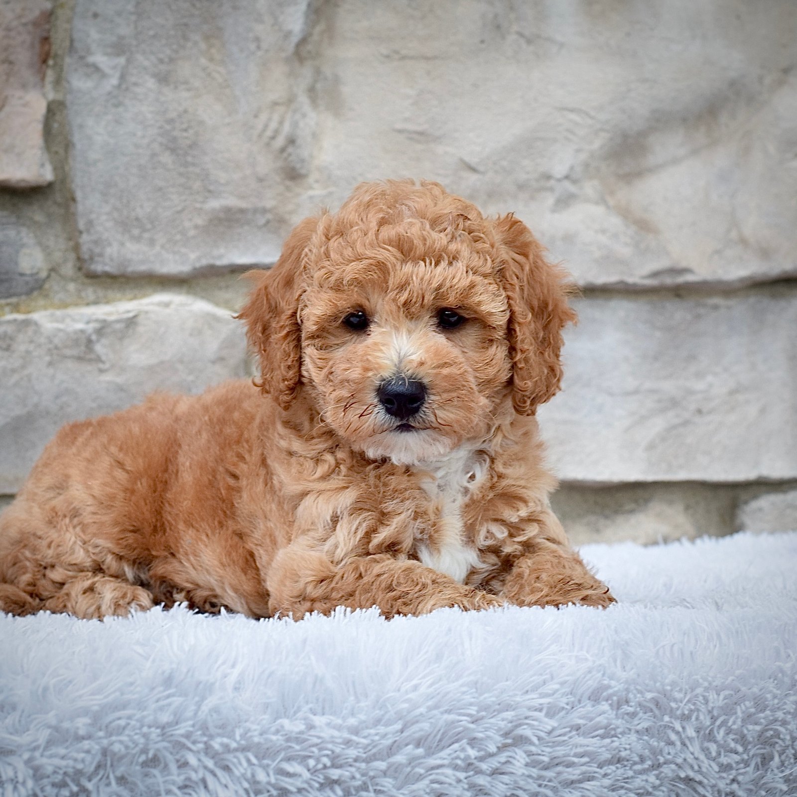We are so excited to introduce you to our loving, playful F1b petite Goldendoodle puppies! All they know here at our family home is constant spoiling and love. Our children spend hours with them every day, romping around in the yard and giving them all the attention their little hearts could ever desire! Because of how socialized they are, they are perfectly friendly and well suited as companions for children of all ages. Tails wagging and paws bouncing, they have a way of wiggling into the hearts of everyone they meet. Their fun, contrasting colors are simply too cute to resist, along with those innocent, expressive puppy eyes looking into yours! They get their good looks from their parents
