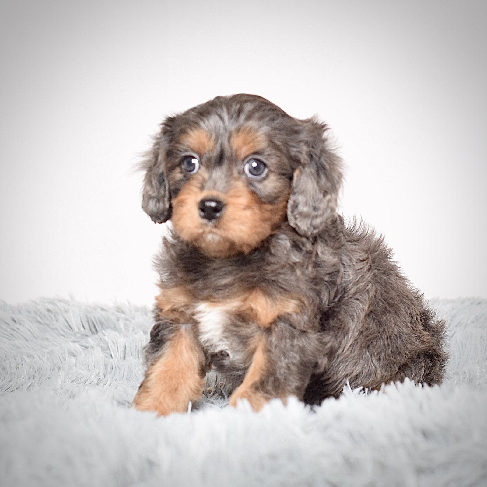 Meet this adorable Mini Cavapoo, a tiny bundle of joy with a delightful personality and a coat as soft as a cloud. Blending the intelligence and hypoallergenic traits of a Poodle with the friendly nature and stunning colors of a Cavalier King Charles, this pup is the perfect companion for any household. Mr. Alonzo promises endless love and happiness to those lucky enough to bring him home.