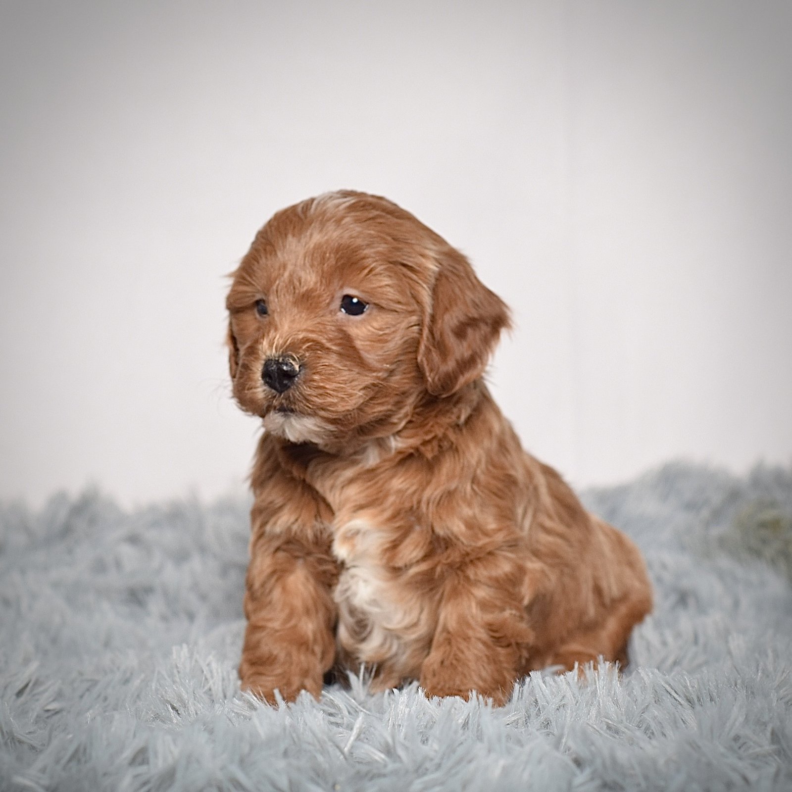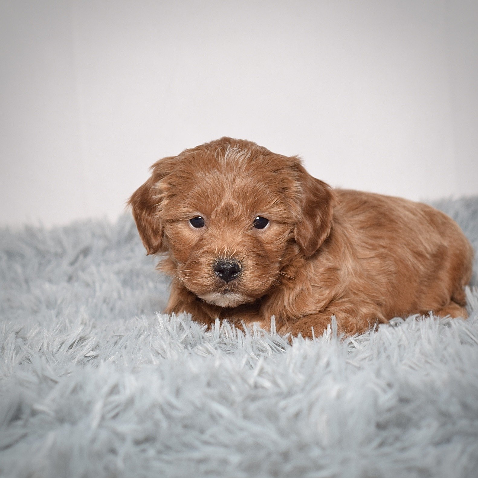 We are so excited to introduce you to our loving, playful F1b petite Goldendoodle puppies! All they know here at our family home is constant spoiling and love. Our children spend hours with them every day, romping around in the yard and giving them all the attention their little hearts could ever desire! Because of how socialized they are, they are perfectly friendly and well suited as companions for children of all ages. Tails wagging and paws bouncing, they have a way of wiggling into the hearts of everyone they meet. Their fun, contrasting colors are simply too cute to resist, along with those innocent, expressive puppy eyes looking into yours! They get their good looks from their parents