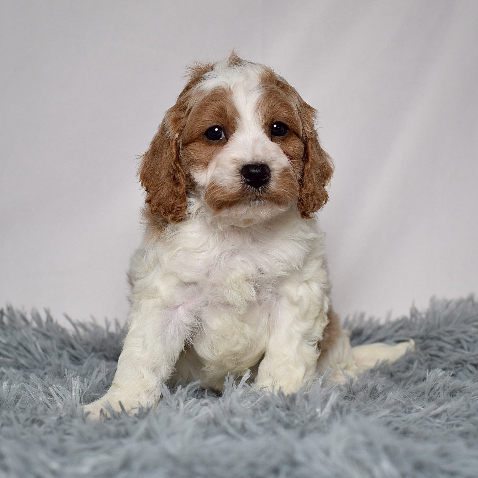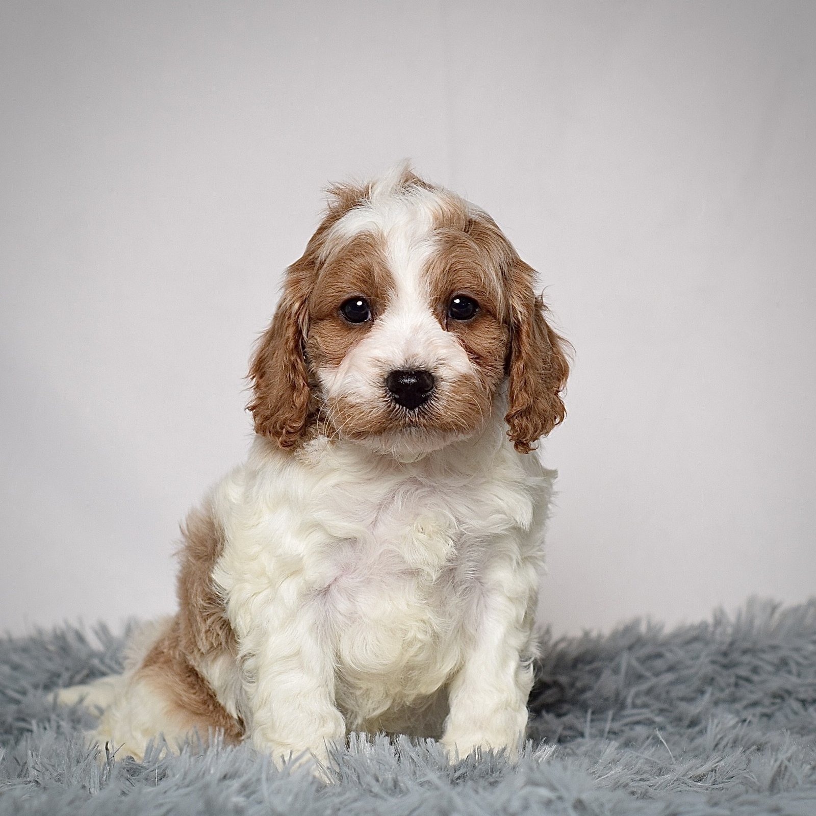 Meet this adorable mini Cavapoo, a tiny bundle of joy with a delightful personality and a coat as soft as a cloud. He blends the intelligence and hypoallergenic traits of a Poodle with the friendly nature and loyalty of cavalier, all in a compact package. His playful spirit and heartwarming charm make him the perfect companion for any household, promising endless love and happiness to those lucky enough to bring him home.