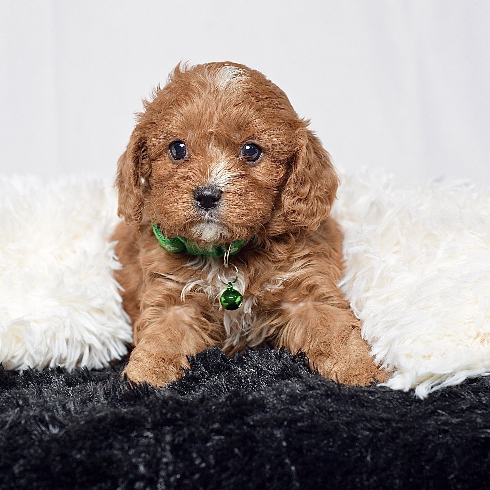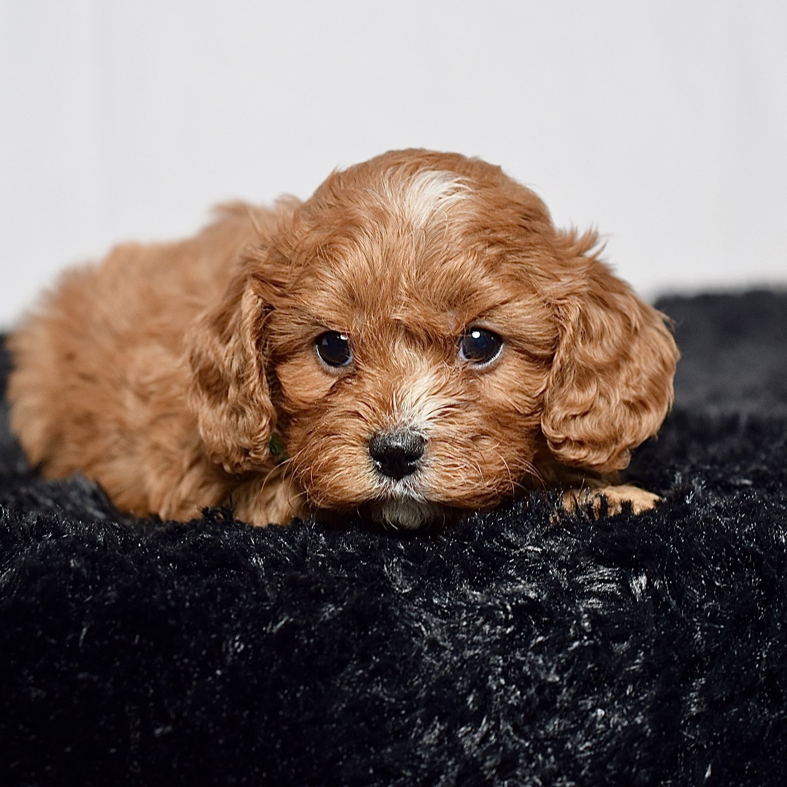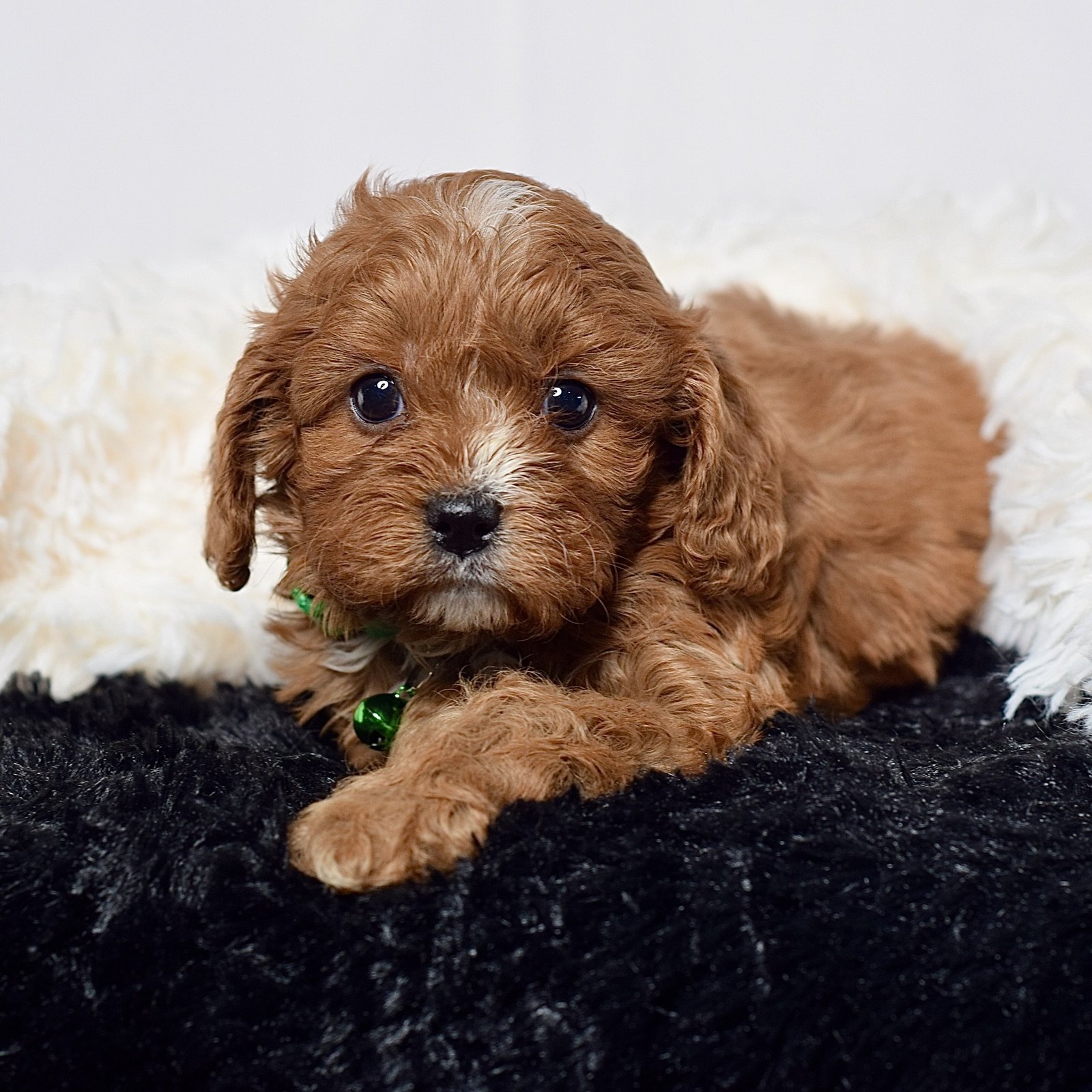 Meet this adorable mini Cavapoo, a tiny bundle of joy with a delightful personality and a coat as soft as a cloud. He blends the intelligence and hypoallergenic traits of a Poodle with the friendly nature and loyalty of cavalier, all in a compact package. His playful spirit and heartwarming charm make him the perfect companion for any household, promising endless love and happiness to those lucky enough to bring him home.