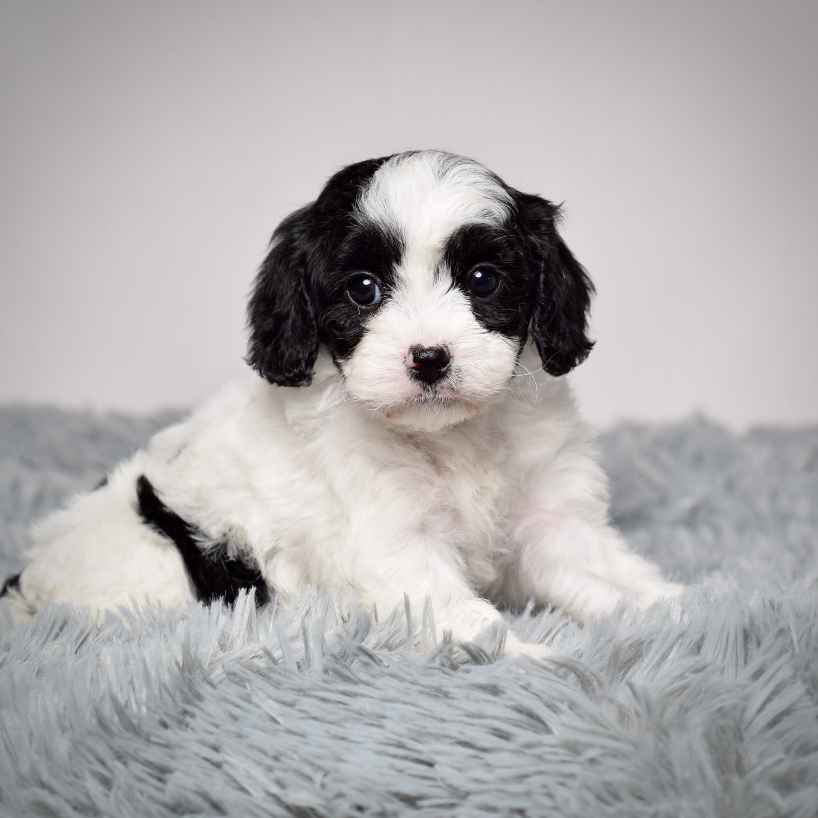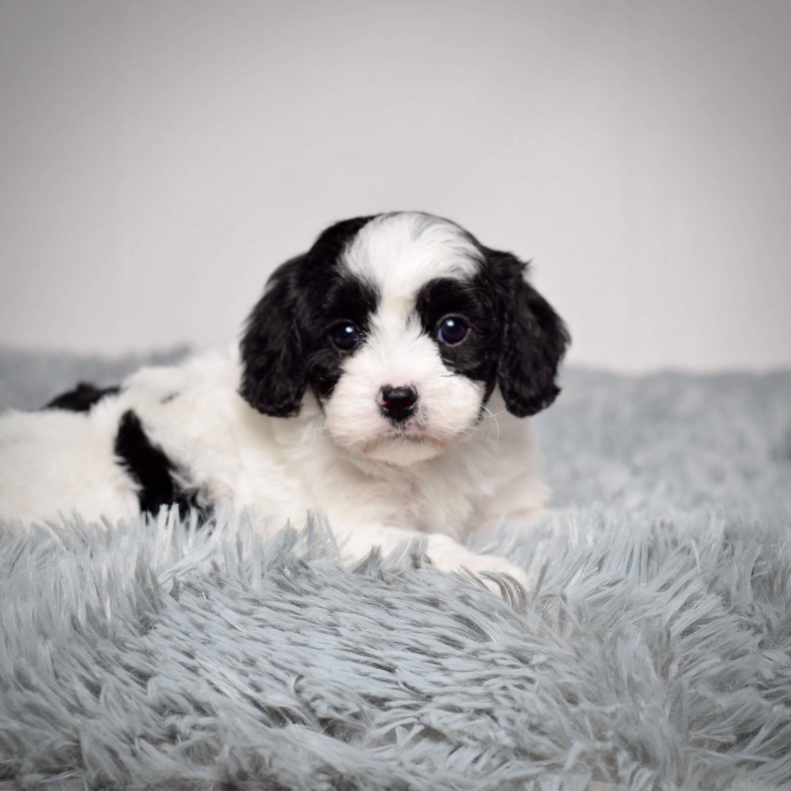 Meet this adorable Mini Cavapoo, a tiny bundle of joy with a delightful personality and a coat as soft as a cloud. Blending the intelligence and hypoallergenic traits of a Poodle with the friendly nature and stunning colors of a Cavalier King Charles, this pup is the perfect companion for any household. Ms Abigail promises endless love and happiness to those lucky enough to bring her home.