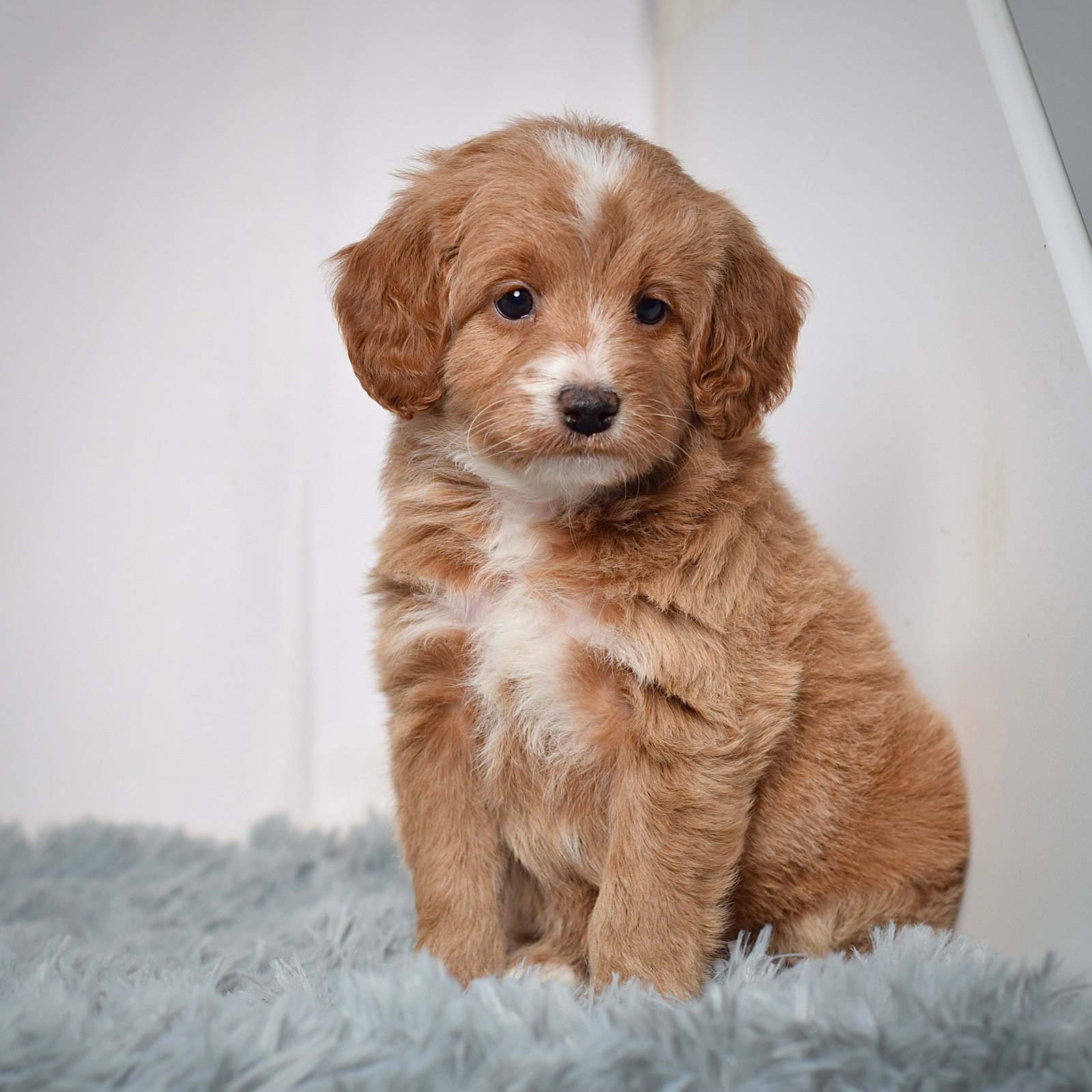 (Mom) Kennedy is a 2nd generation mini Goldendoodle that weighs 22 pounds with a soft and fluffy coat. She is a wonderful mother and has a very sweet temperament.